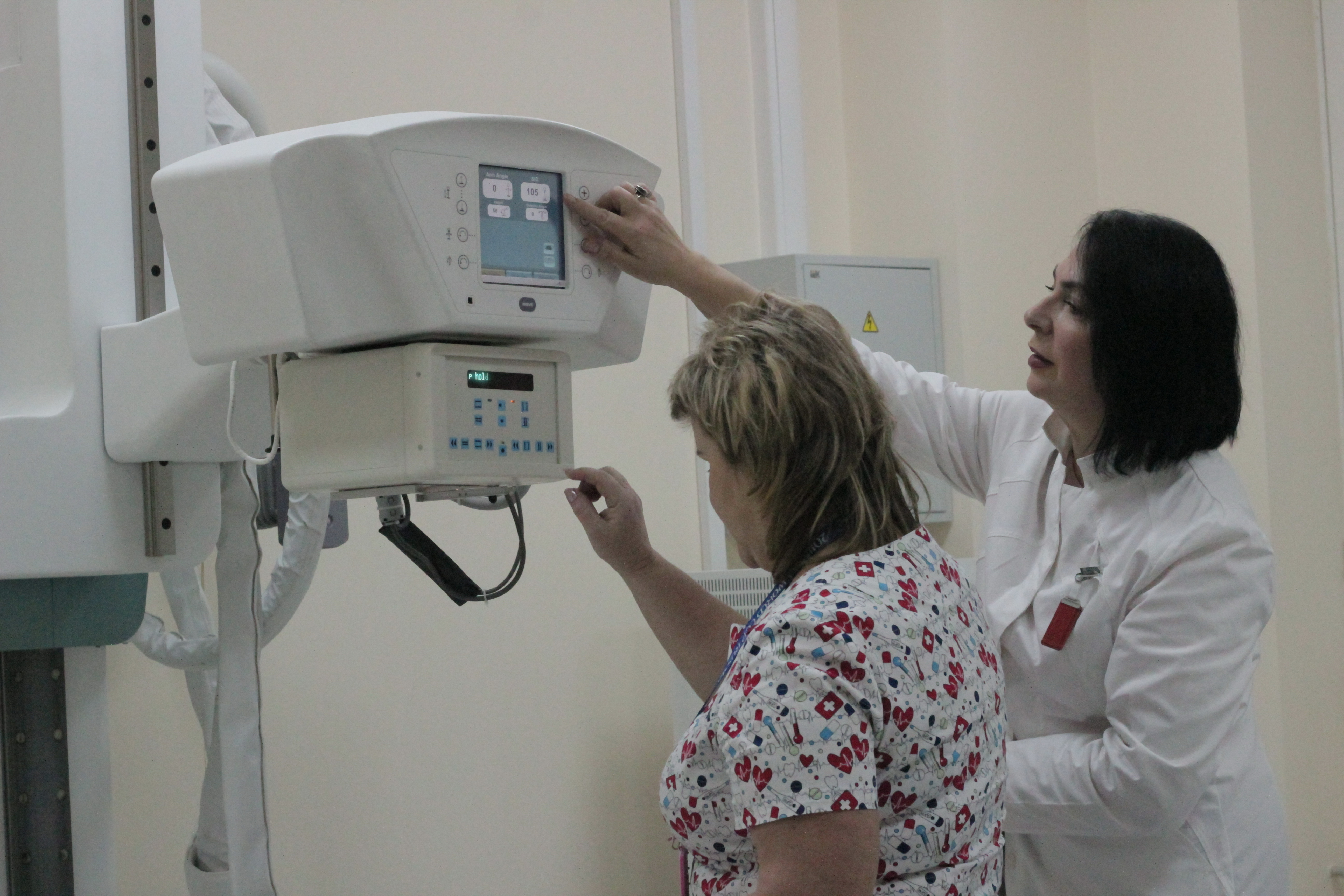 До конца года  у нас заработает новый рентгеновский аппарат очень высокого уровня, который будет помогать в диагностике пациентов хирургического корпуса. Это комбидиагност с двумя рентгеновскими трубками. Цифровые снимки можно будет выполнять когда пациент лежит прямо на каталке или на кровати, на вытяжении. Можно будет сшивать несколько изображений пациента, чтобы получить снимки в полный рост.