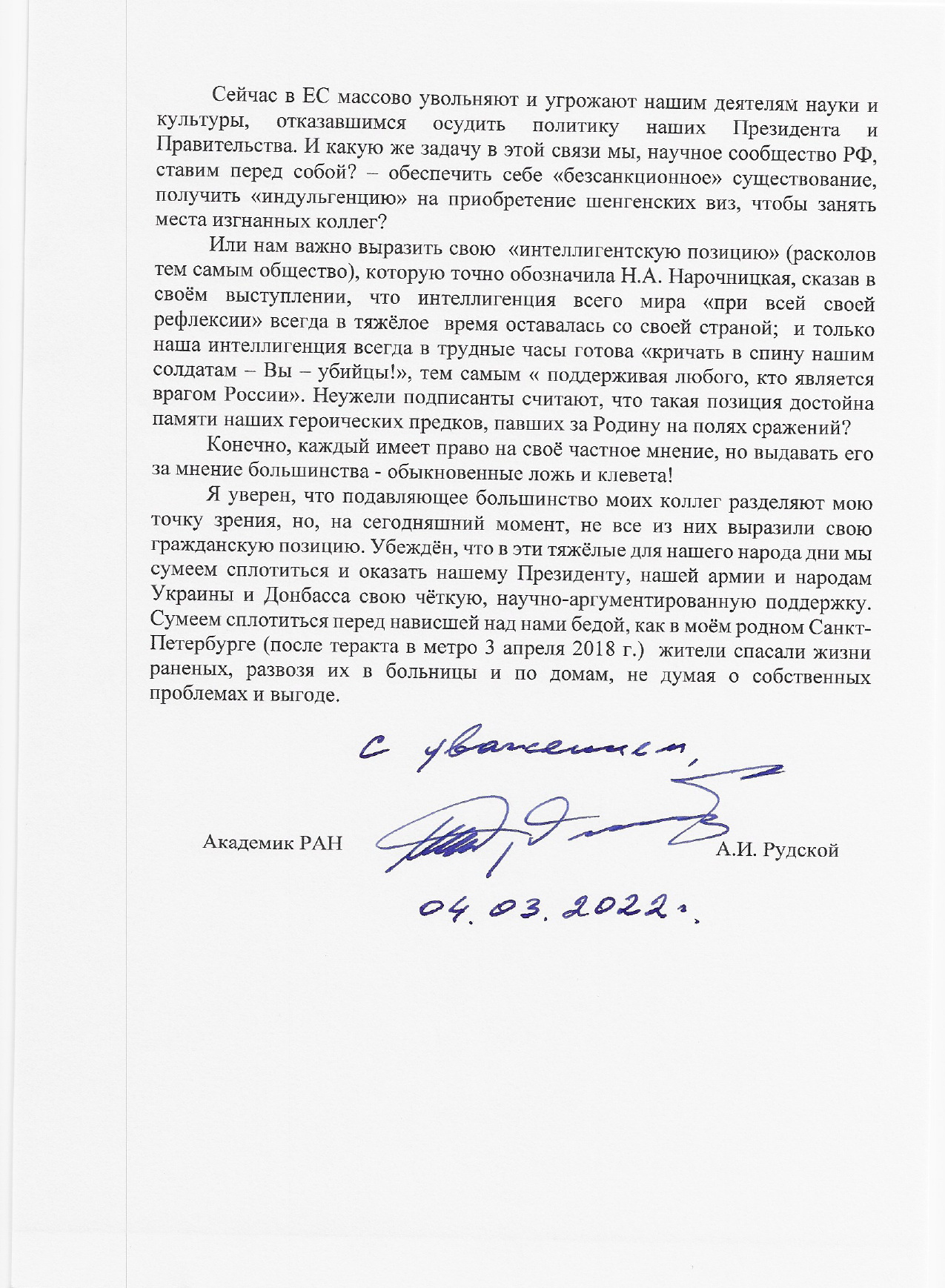 Ректор Педиатрического университета Дмитрий Иванов заявил о разделении позиции, высказанной академиком РАН, ректором Санкт-Петербургского политехнического университета имени Петра Великого Андреем Рудским в обращении к Президенту РАН.