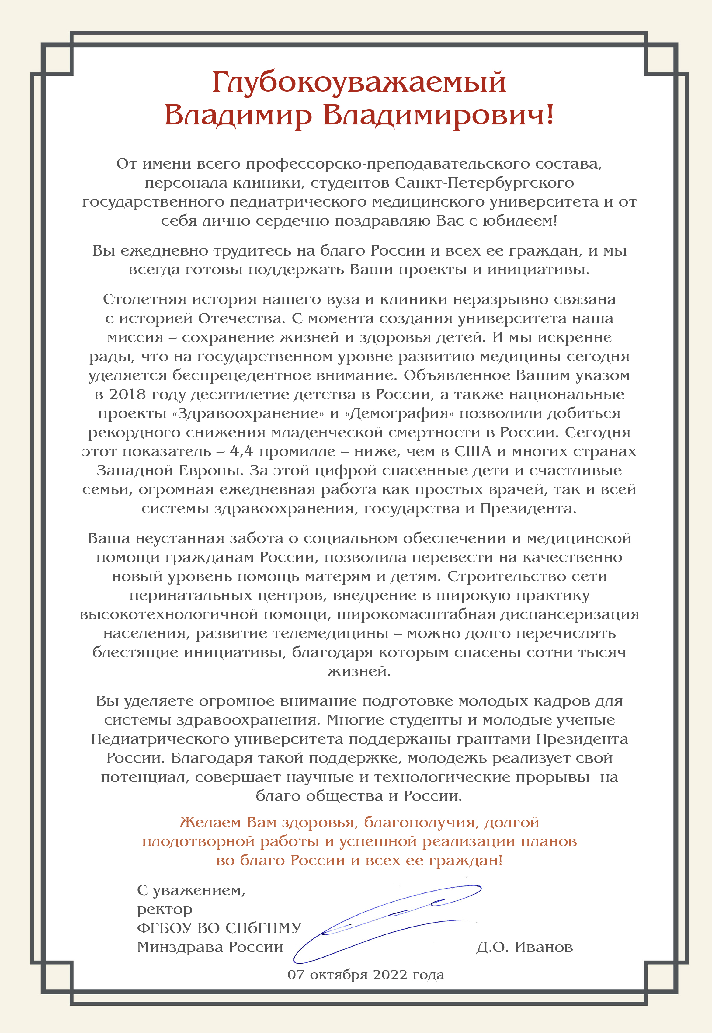 7 октября – юбилей Президента России Владимира Путина