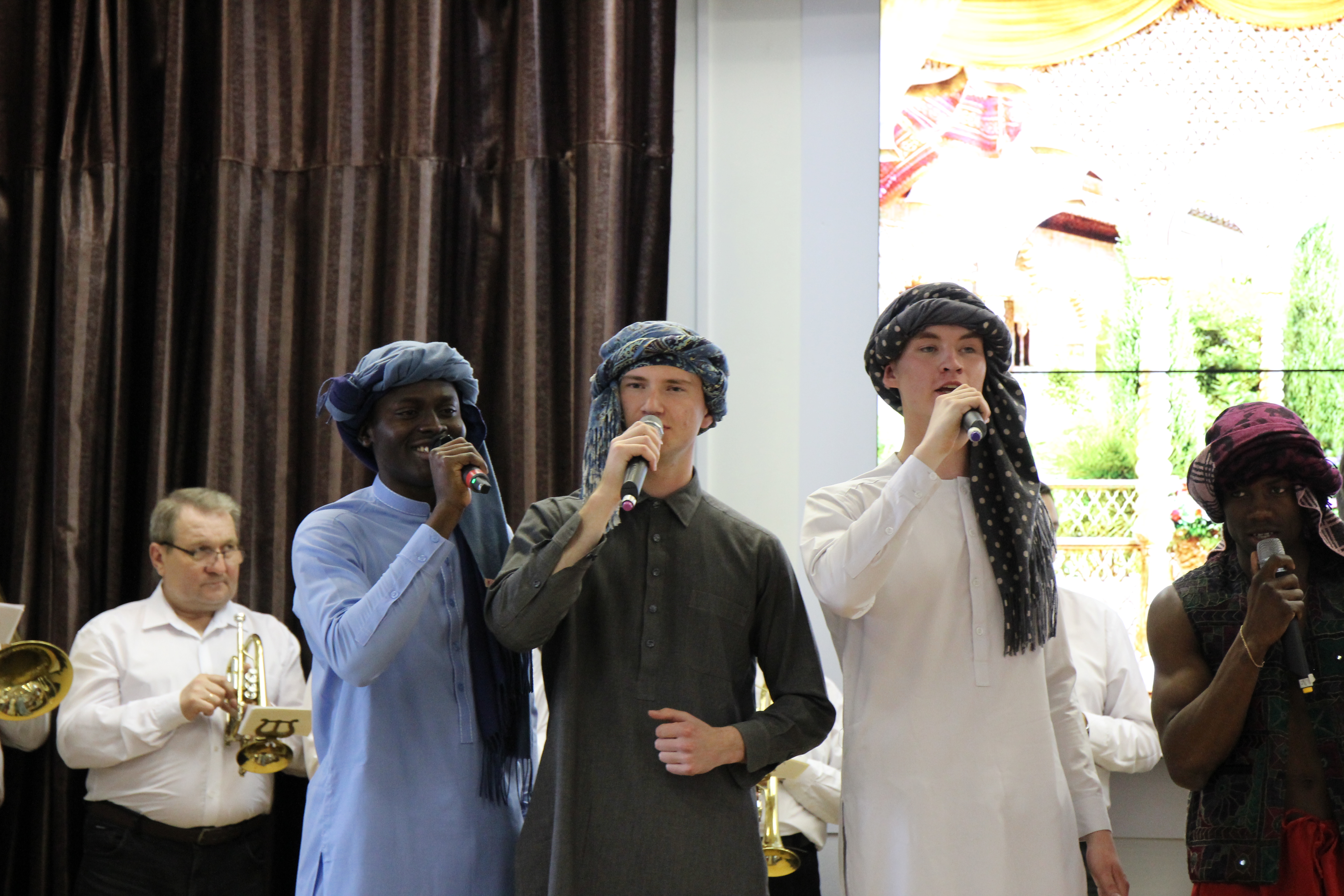 Концертная часть вечера стала подарком любимому городу. Участники рассказали о петербургских мостах, исполнили песни, посвященные Северной столице. Кроме того, гостей праздника завораживали сказочными преданиями востока, радовали танцами и зажигательными песнями. Со сцены звучали мелодекламации, исполненные на разных языках.  Большую помощь в организации мероприятия оказал художественный клуб “Гиппократ”, который тоже преподнес яркий музыкальный подарок всем зрителям.