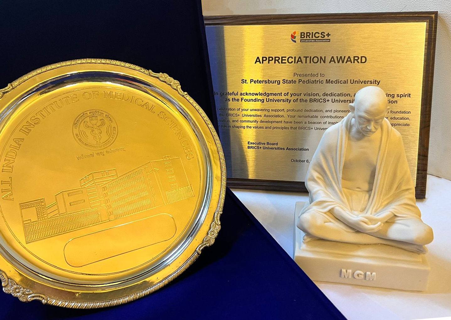 Сотрудники института передали коллегам из Педиатрического университета важный символ – статуэтку Махатмы Ганди, в надежде, что партнёрство будет плодотворным и взаимовыгодным.