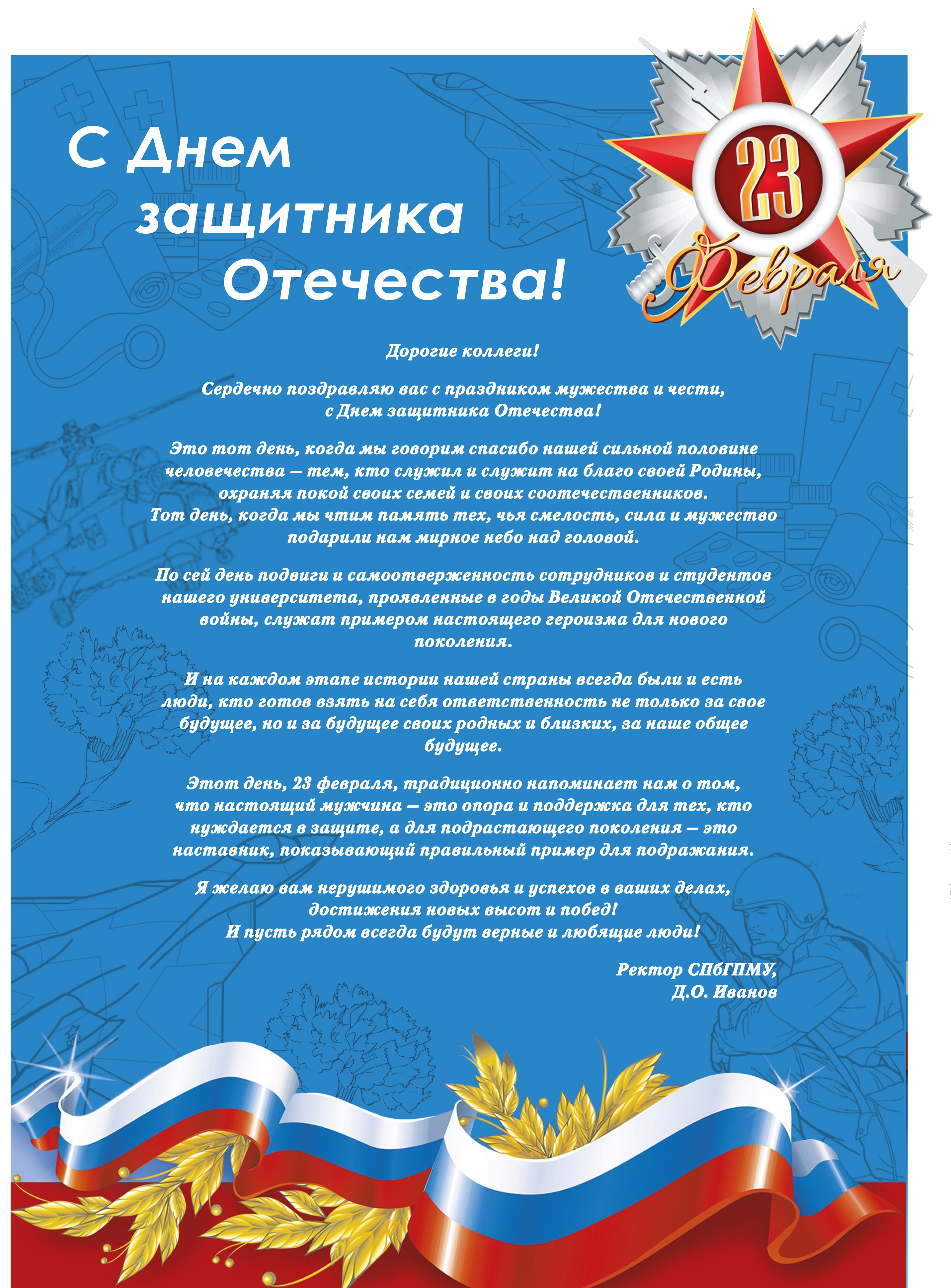 Поздравление ректора СПбГПМУ с 23 февраля