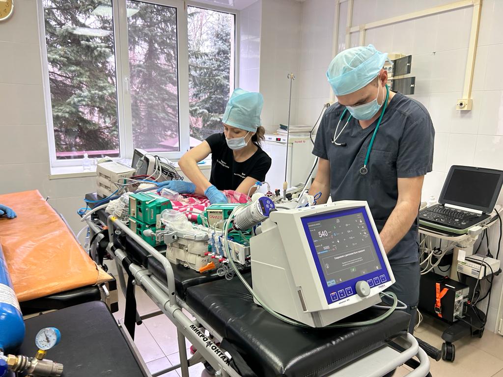 В состав бригады вошли заведующий отделением реанимации новорожденных Назар Зеленин, врач анестезиолог-реаниматолог Екатерина Хапугина, кардиохирург Евгений Кулемин. Группу возглавил заместитель главного врача по анестезиологии-реанимации и неонатологии Алексей Яковлев.