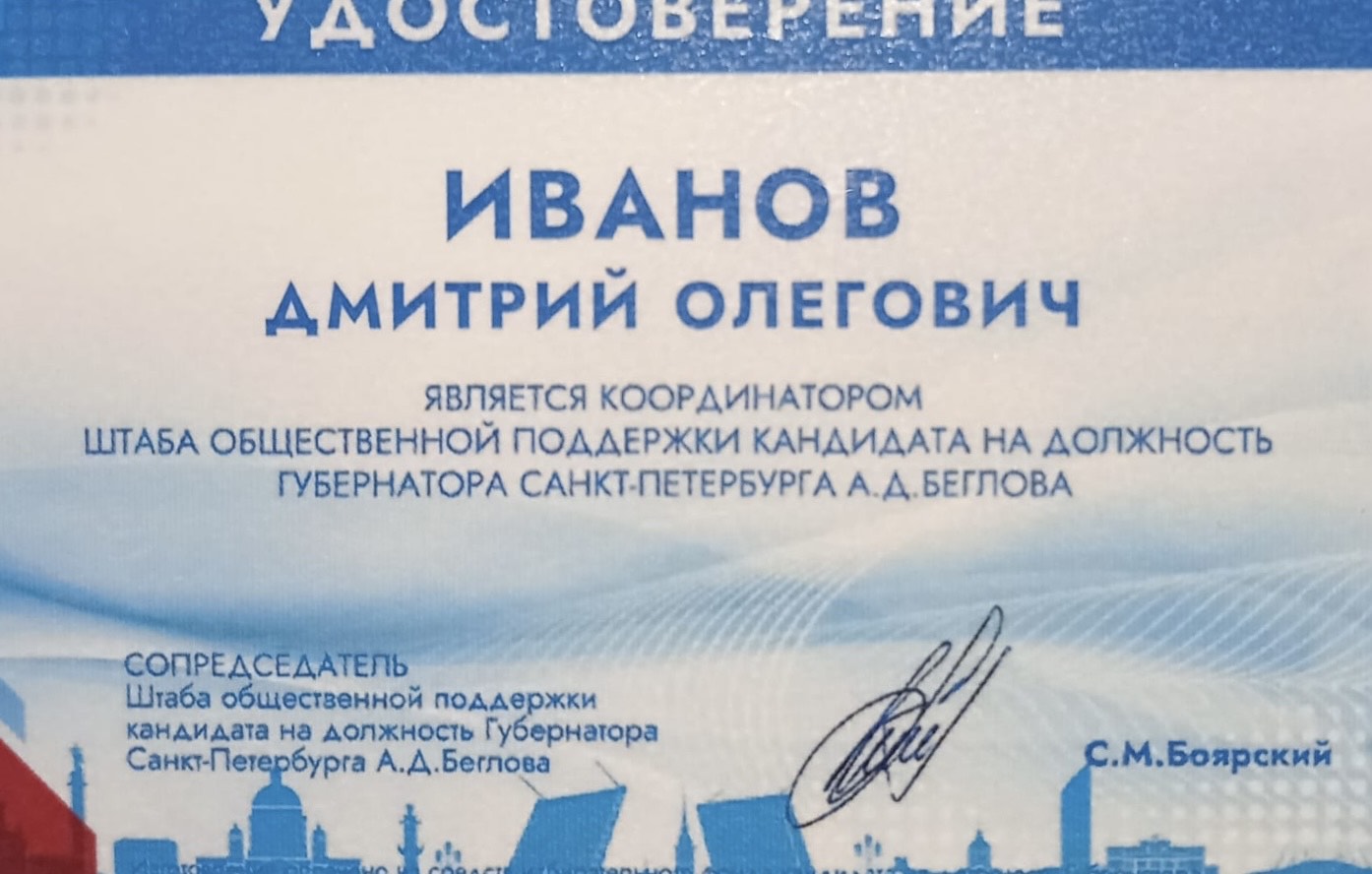 Среди них ректор Педиатрического университета, главный неонатолог Минздрава России. Дмитрий Иванов стал координатором штаба общественной поддержки кандидата на должность губернатора Санкт-Петербурга Александра Беглова.  Удостоверение, подтверждающее эти полномочия, было вручено сегодня генеральным директором Государственного Эрмитажа Михаилом Пиотровским