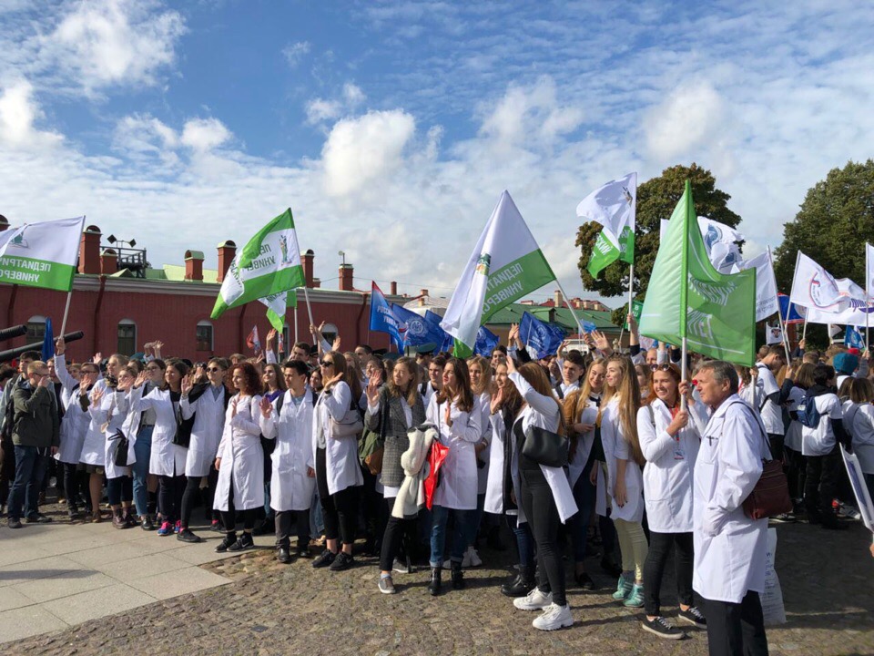 15 сентября в Петропавловской крепости прошел Парад российского студенчества, в котором приняло участие свыше 3 тысяч новоиспеченных первокурсников из почти полусотни вузов Санкт-Петербурга. Среди них и студенты Педиатрического университета.