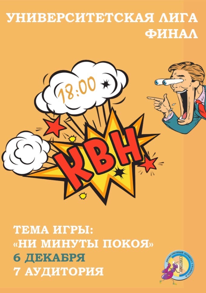 6 декабря в 18:00 в 7 аудитории СПбГПМУ состоится финал Университетской лиги КВН.
