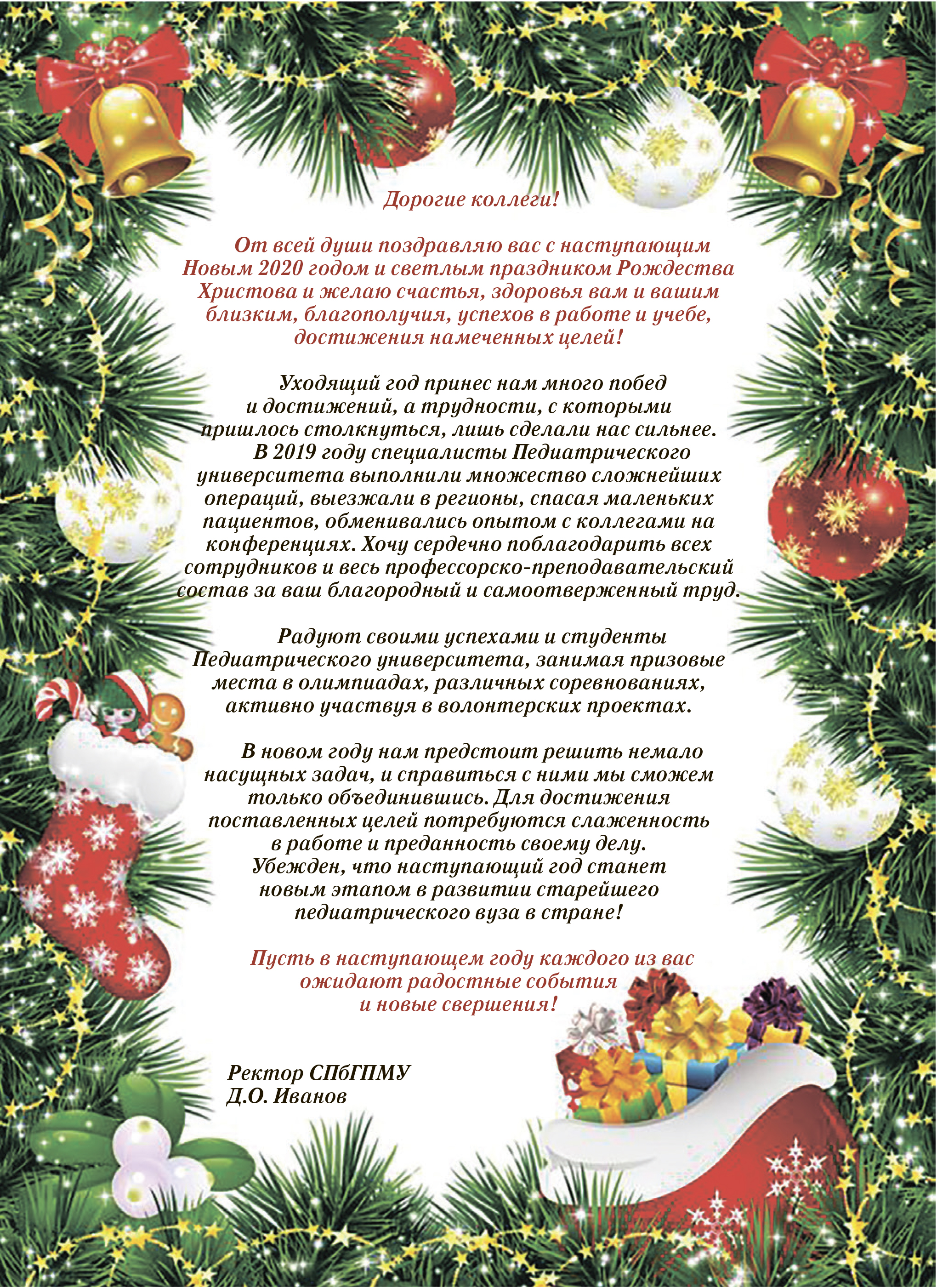 Поздравление ректора СПбГПМУ Д.О. Иванова с Новым годом и Рождеством