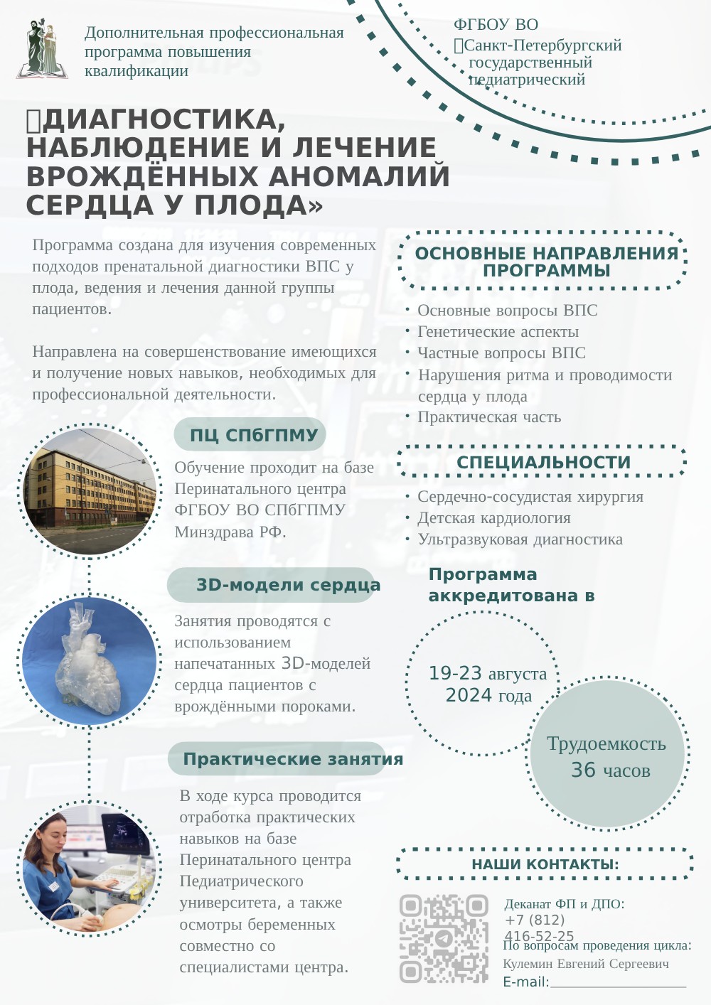 Программа создана для изучения современных подходов пренатальной диагностики ВПС у плода, ведения и лечения данной группы пациентов.