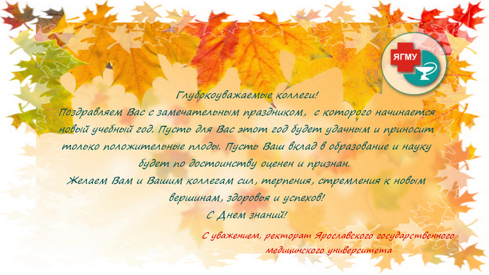 Поздравление от ректората Ярославского государственного медицинского унивеситета (Дата размещения 02.09.2019)